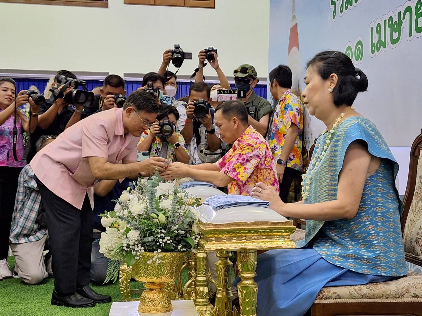 สวัสดีปีใหม่ไทยรดน้ำขอพรผู้ว่าราชการจังหวัดสมุทรปราการ เนื่องในเทศกาลสงกรานต์ประจำปี 2566 เพื่อร่วมอนุรักษ์ประเพณีที่ดีงามของไทย