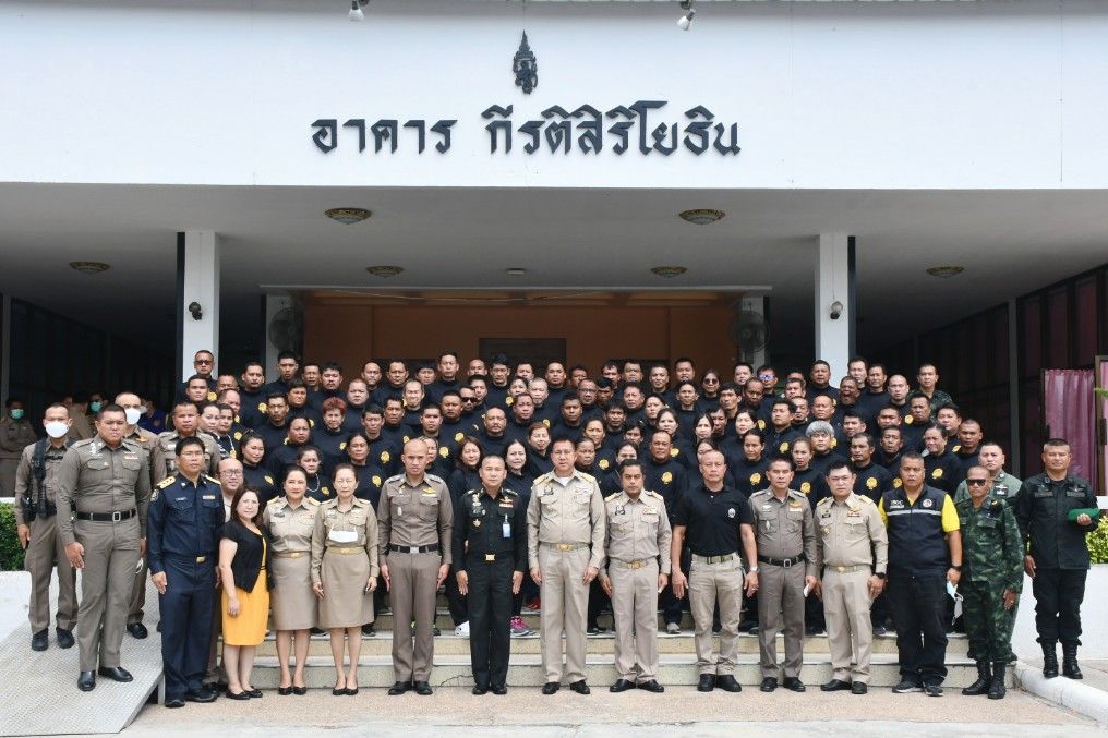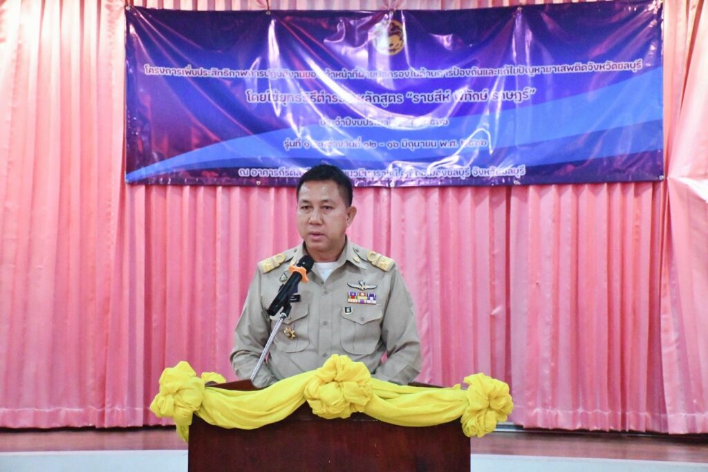 นายธวัชชัย ศรีทอง ผู้ว่าราชการจังหวัดชลบุรี เป็นประธานในพิธีเปิดการฝึกอบรมโครงการเพิ่มประสิทธิภาพการปฏิบัติงานของเจ้าหน้าที่ฝ่ายปกครองในด้านการป้องกันและแก้ไขปัญหายาเสพติดจังหวัดชลบุรี โดยใช้ยุทธวิธีตำรวจ หลักสูตร “ราชสีห์ พิทักษ์ ราษฎร์” ประจำปีงบประมาณ พ.ศ.2566 รุ่นที่ 1 จำนวน 100 คน ฝึกอบรมระหว่างวันที่ 12 – 16 มิถุนายน 2566 ณ อาคารกีรติสิริโยธิน ค่ายนวมินทราชินี อำเภอเมืองชลบุรี จังหวัดชลบุรี โดยได้รับเกียรติจาก ทหาร ตำรวจภูธรจังหวัดชลบุรี ปลัดอำเภอ และข้าราชการตำรวจที่ผ่านการฝึกอบรมยุทธวิธีมาเป็นวิทยากร ณ อาคารกีรติสิริโยธิน ค่ายนวมินทราชินี