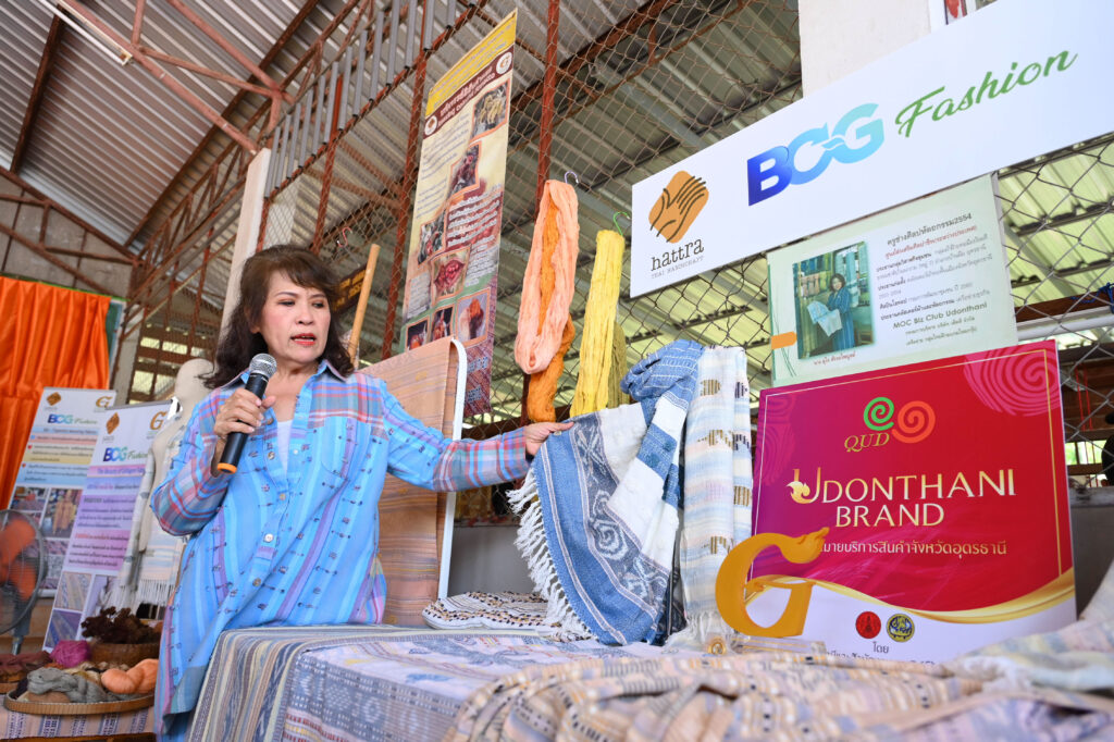 ครูอุไร สัจจะไพบูลย์ ครูช่างศิลปหัตถกรรม ปี 2554 ของ sacit เผยถึงการต่อยอดงานผ้าทอย้อมสีธรรมชาติ ที่นำแนวคิด BCG Model มาใช้ในการสร้างสรรค์งานผ้าทอ ภายใต้ชื่อแบรนด์ Hattra ด้วยกระบวนการผลิตงานผ้าไทย ผ่านแนวคิดการใช้เส้นใยธรรมชาติที่เป็นมิตรต่อสิ่งแวดล้อม การย้อมสีจากเปลือกไม้ และดอกคำแสด ที่ให้สีส้ม ซึ่งเป็นสีประจำจังหวัดอุดรธานี และต่อยอดเรื่องการประยุกต์ใช้วัสดุเศษผ้าที่เหลือทิ้งจากกระบวนการผลิต จนพัฒนาเกิดมาเป็นสินค้าประเภท Circular Design อีกทั้งยังมีการนำเส้นใย