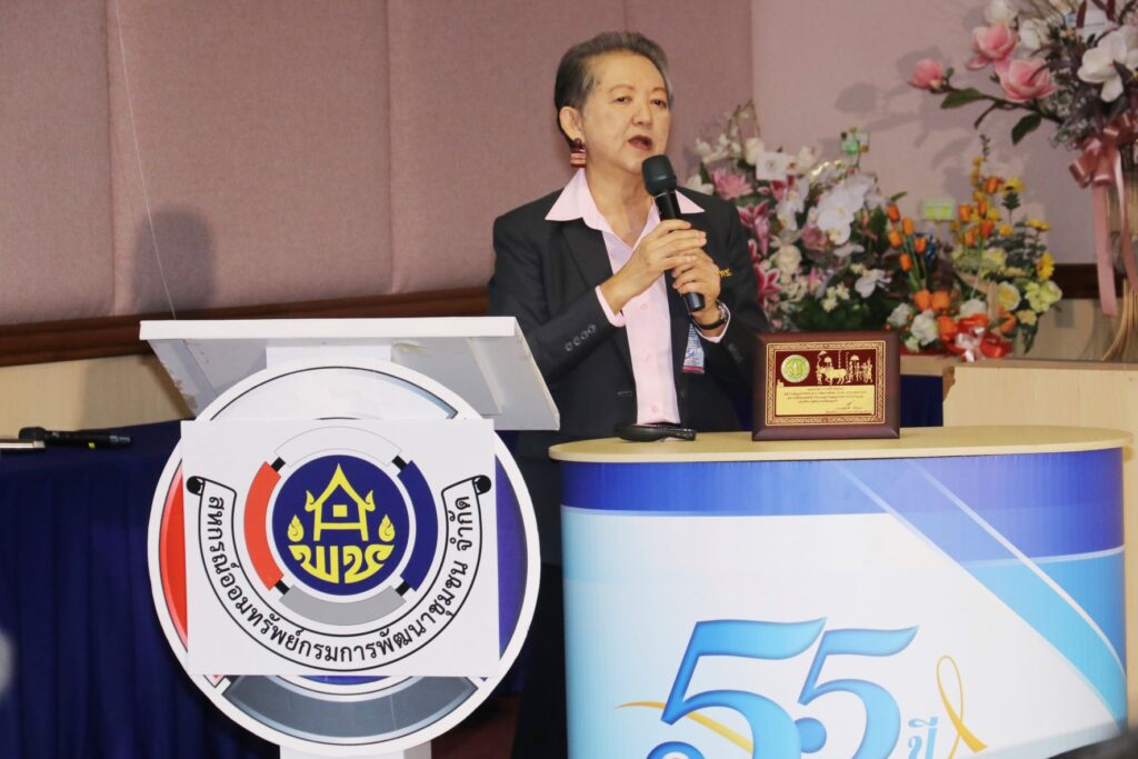 นายอรรษิษฐ์ สัมพันธรัตน์ อธิบดีกรมการพัฒนาชุมชน กล่าวว่า วันนี้ก็เดินทางมา 55 ปีแล้ว ถือว่าวันนี้เป็นปีที่สำคัญของสหกรณ์กรมการพัฒนาชุมชนที่แท้จริง เพราะว่าได้เป็นสหกรณ์ดีเด่นระดับชาติ ซึ่งได้ไปรับรางวัลในวันพืชมงคล ปี 2566 ที่ผ่านมา ถือว่าเป็นความตั้งใจจริงของประธานคณะกรรมการสหกรณ์และสมาชิกสหกรณ์ทุกท่าน รวมถึงเจ้าหน้าที่ทุกคนที่ผลักดัน ไม่ว่าจะเป็นการพัฒนา การบริหารคน การบริหารเงิน การวางแผนกลยุทธ์ต่าง ๆ เพื่อที่จะทำให้สามารถได้รับรางวัลได้ ซึ่งไม่ใช่ผลงานปีเดียวเป็นผลงาน 3 ปีต่อเนื่องกันมา เป็นการวางแผนมาอย่างยาวนานเพื่อที่จะบรรลุเป้าหมาย มีค่าคะแนนตัวชี้วัดต่าง ๆ ที่ประสบความสำเร็จ สุดท้ายขอให้รักษามาตรฐานนี้ไว้ และทำดียิ่งขึ้นไป ต่อยอดในสิ่งที่ดี ๆ เพื่อที่จะทำให้สหกรณ์ออมทรัพย์กรมการพัฒนาชุมชนเป็นที่พึงพอใจของสมาชิก ซึ่งเป็นข้าราชการของกรมการพัฒนาชุมชน ทำให้สมาชิกสหกรณ์ฯ มีความเชื่อมั่น ไม่ว่าจะเรื่องสินเชื่อสวัสดิการเพื่อให้คุณภาพชีวิตของสมาชิกดีขึ้น ในคณะกรรมการชุดนี้ ซึ่งได้มีการวางมาตรฐานที่ดี เพื่อที่จะให้คนที่มาสานต่อนำมาตรฐานที่วางไว้อย่างดีไปสืบสานต่อไป