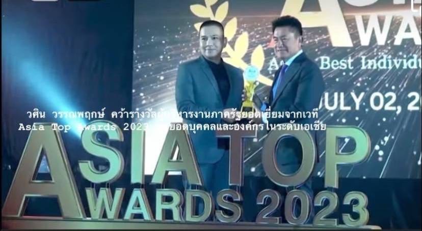 วศิน วรรณพฤกษ์ คว้ารางวัลผู้บริหารงานภาครัฐยอดเยี่ยมจากเวที Asia Top Awards 2023 สุดยอดบุคคลและองค์กรในระดับเอเชีย