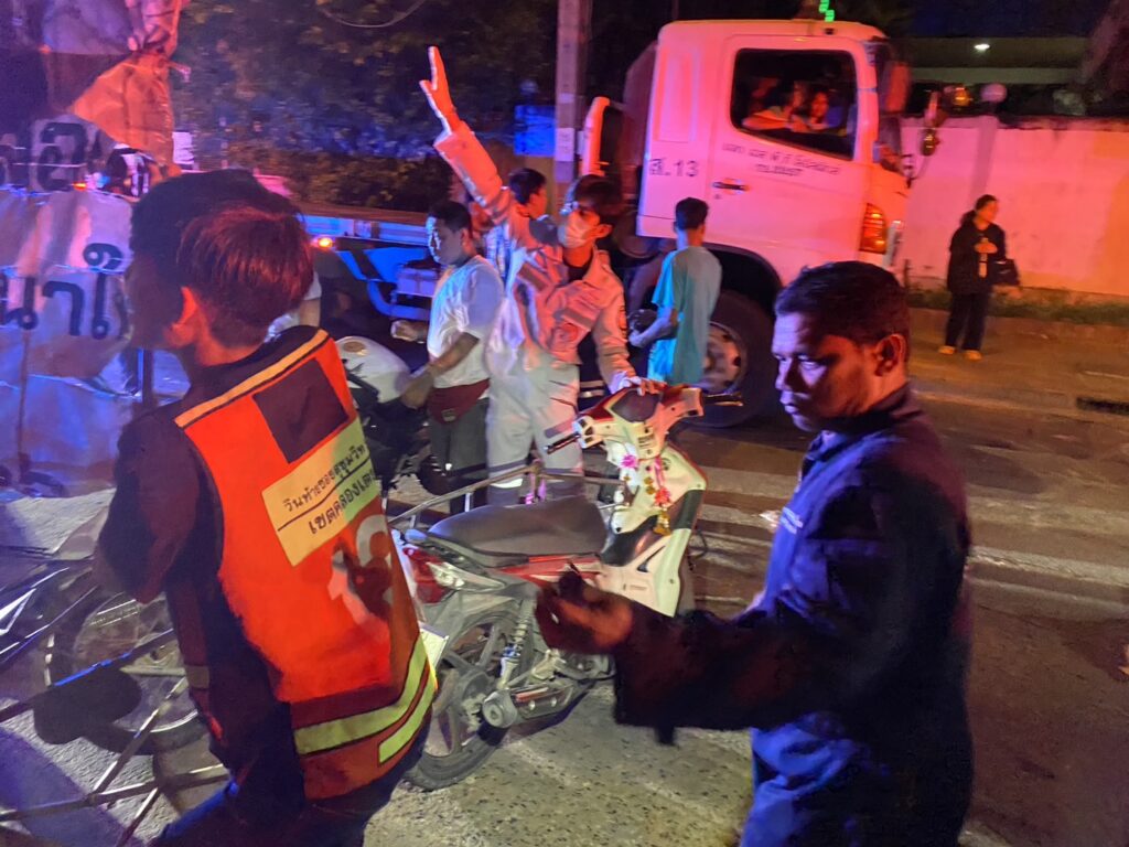 จากการสอบถามผู้เห็นเหตุการณ์ เล่าว่ามี รถจยย. CPR 2 คัน มาจากทางสนง.เขต ขับแข่งประลองกันมาด้วยความเร็ว จนทำให้เกิดการเสียหลัก ชนรถซาเล้งของอีกเลน พังยับเยินทั้ง 2 คัน