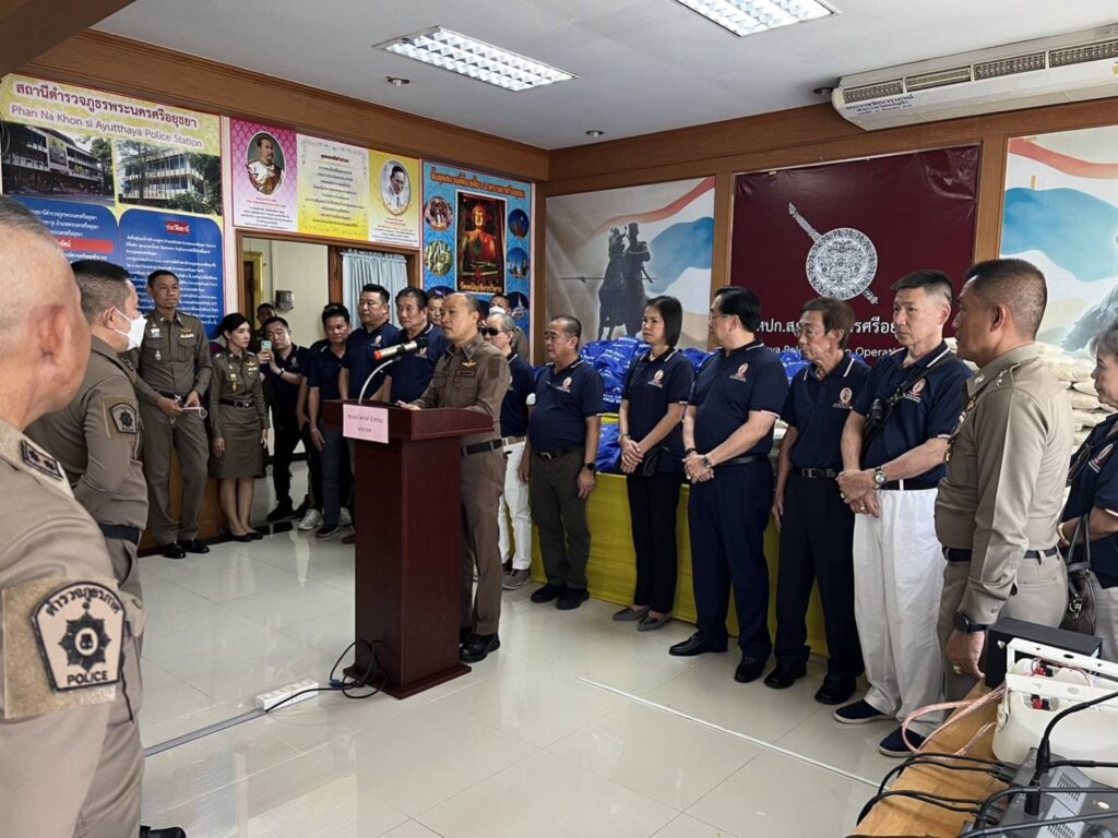 ทั้งนี้ พล.ต.ท.ไตรรงค์ ผิวพรรณ ผบช. กมค.ได้เป็นประธานพิธีมอบข้าวสาร และ ถุงยังชีพ ของ”มูลนิธิพระราหู โครงการใจถึงใจ”ร่วมกับ ดร.หิมาลัย ผิวพรรณ เพื่อเป็นขวัญและกำลังใจในการ ปฎิบัติหน้าที่ของข้าราชตำรวจสภ.พระนครศรีอยุธยา