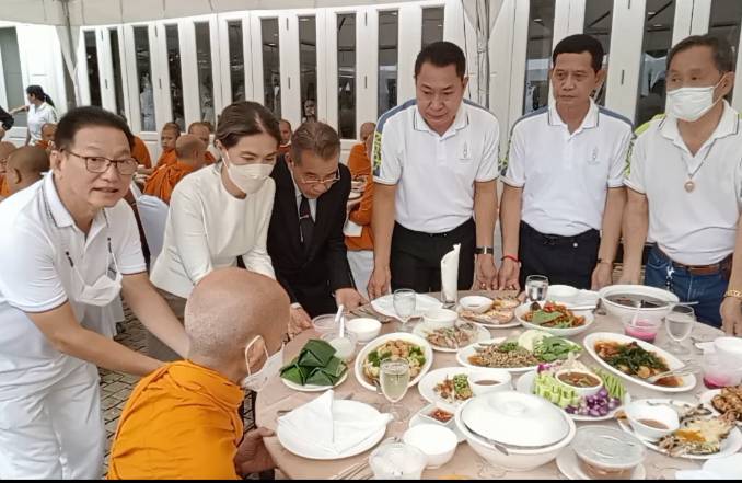 ภายในงานได้นิมนต์พระสงฆ์จากวัดเบญจมบพิตร, วัดมหาธาตุยุวราชรังสฤษฎิ์, วัดชนะสงคราม, วัดสระเกศ, วัดธรรมกาย วัดพระพิเรนทร์ วัดชำนิหัตถการ วัดพลับพลาชัย วัดจอมสุดาราม และวัดชัยมงคล รวมจำนวน 45 รูป มาฉันฑ์ภัตตาหารเพล