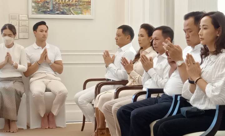 จากนั้นได้นิมนต์พระสงฆ์ทรงสมณะศักดิ์ 10 รูป ขึ้นสวดพระพุทธมนต์ โดยมี นายอนุทิน ชาญวีรกุล รองนายกรัฐมนตรีและรัฐมนตรีว่าการกระทรวงสาธารณะสุข นายศุภมิตร ชิณศรี ผู้ว่าราชการจังหวัดสมุทรปราการ นายสุจินต์ วาจากิจ รองผู้ว่าราชการจังหวัด นางสาวนันทิดา แก้วบัวสาย นางสาวประภาพร อัศวเหม นางสาวชนม์ทิดา อัศวเหม ดร.ศิริภัสสร ปิยนันทวารินทร์ ผู้พิพากษาสมทบศาลเยาวชนและครอบครัวจังหวัดสมุทรปราการ นางสาวอัญชลี ไพรีรักษ์ ผู้ประกาศข่าว TOP NEWS พร้อมด้วยเหล่าศิลปินดารา ครอบครัวอัศวเหม และแขกผู้มีเกียรติร่วมฟังและรับพรจากพระสงฆ์