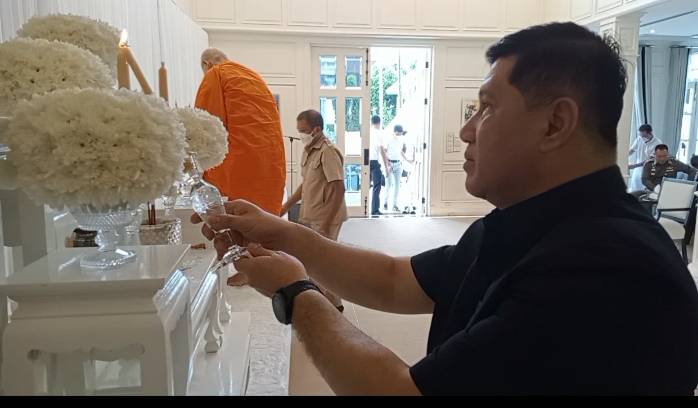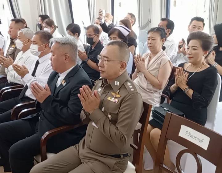 ก่อนพิธีในช่วงเช้าเวลา 09.30 น.ไดนิมนต์พระสงฆ์ขึ้นแสดงธรรมพระเทศนา โดยมี นายธัญว์ บุณยะตุลานนท์ รองอธิบดีผู้พิพากษาศาลอุทธรณ์ ภาค 2 มาเป็นประธานจุดธูปเทียนบูชาพระรัตนตรัย นายทวีพงษ์ วิชัยดิษฐ์ ผู้ว่าการเคหะแห่งชาติ เป็นประธานจุดธูปเทียนหน้าตู้พระอภิธรรม และนางสาวนันทิดา แก้วบัวสาย นายกองค์การบริหารส่วนจังหวัดสมุทรปราการ เป็นประธานจุดธูปเทียนหน้าหีบศพ
