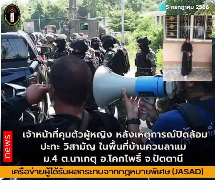 วันเกิดเหตุ เขาออกไปทำงานตามปกติ วันนั้นทั้งวัน ไม่ได้เจอกัน ไม่ได้คุยกันเลย มารู้อีกที ก็ตอน 8 โมง 10 นาที ว่า เขาถูกยิง ลูกสาวเป็นคนโทรมาบอกว่า มามี๊ ป๊าโดนยิง ตอนนั้นก็ยังคิดว่า เขาจะรอด 50 ๆ คือ ไม่ตาย ตนก็ได้รีบขับรถกลับมาที่บ้าน เมื่อมาถึง มีตำรวจรออยู่ แล้วบอกว่า ให้ใจเย็นๆ ทำใจดีๆ ตอนนี้ยังเอาสามีเราออกมาไม่ได้นะ ได้ยินแบบนั่น เราก็รู้แล้วว่าเขาไม่รอด เข่าแทบทรุด มันตื้อไปหมด ไม่คิดว่าจะเป็นเรื่องจริง”ความรู้สึกของ นางศศิธร หะยีเลาะ ภรรยา ของ นายอาหมะกอซี หะยีเลาะ ผู้ช่วยผู้ใหญ่บ้าน หมู่ 3 ต.นาเกตุ อ.โคกโพธิ์ จ.ปัตตานี ที่ถูกยิงเสียชีวิต ขณะร่วมปฏิบัติหน้าที่เข้าไปเจรจาให้ผู้ก่อเหตุรุนแรงยอมมอบตัว เมื่อวันที่ 4 ก.ค. 2566 ผู้ที่ต้องกลายเป็นหญิงหม้าย ที่ได้รับผลกระทบจากเหตุรุนแรงในพื้นที่จังหวัดชายแดนภาคใต้