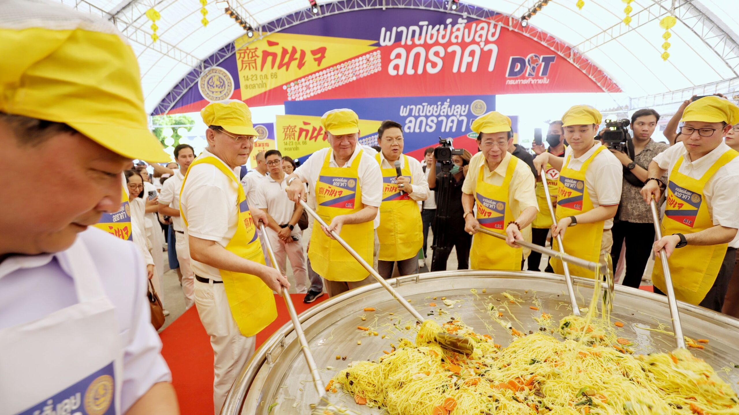 ทั้งนี้ ภายในงานได้ผัดหมี่เจกระทะยักษ์ ร่วมกับอาจารย์ยิ่งศักดิ์ จงเลิศเจษฎาวงศ์ และมอบให้กับผู้เข้าร่วมงานได้ชิม และผู้ประกอบการ ร้านอาหาร ร้านธงฟ้า และอื่นๆอีกมากมายที่นำมาลดราคาเพื่อส่งเสริมให้ประชาชนมีทางเลือกเมนูอาหารเจ ราคาประหยัด 35-40 บาท