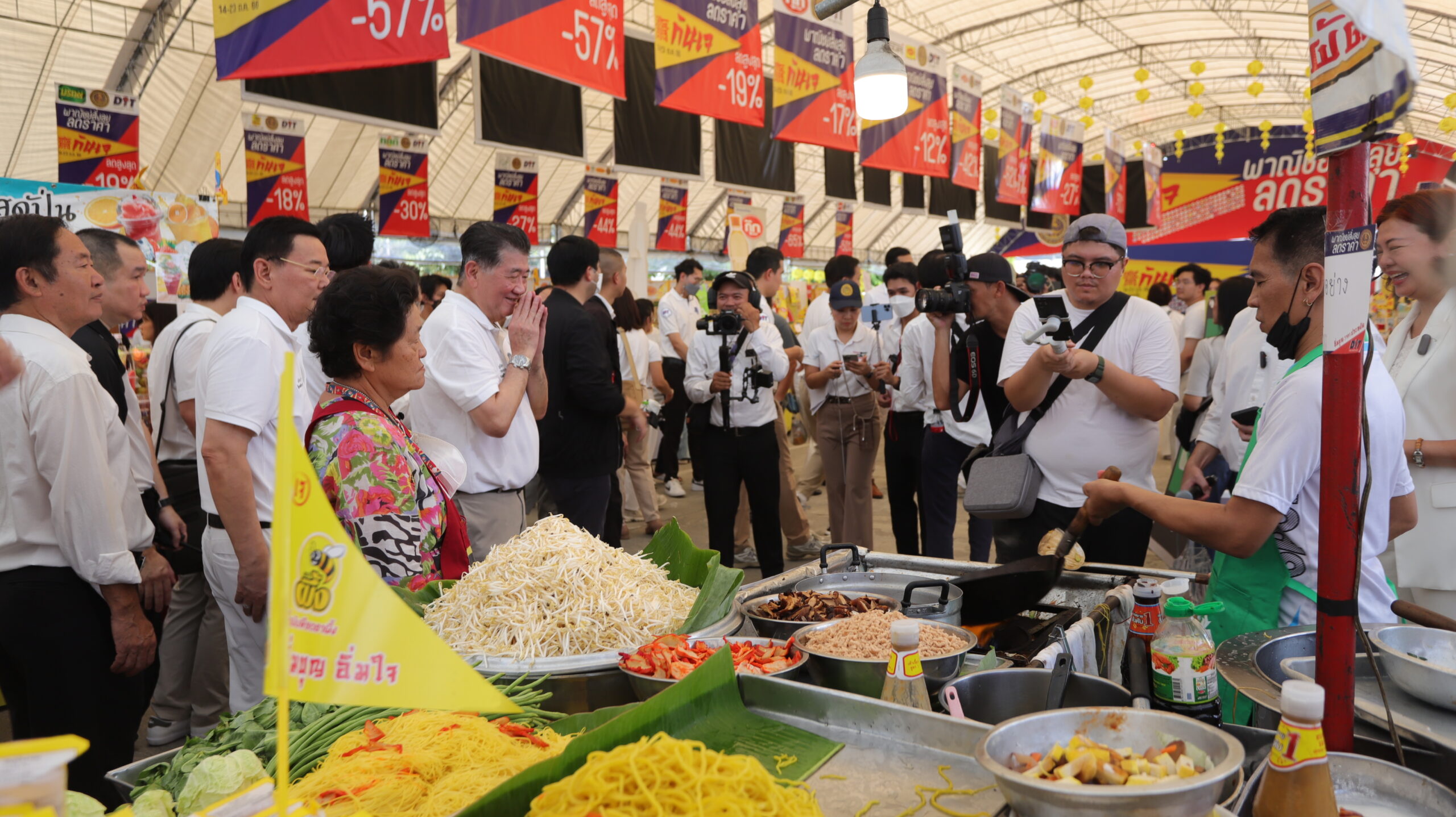 เมื่อเวลา 10.00 น.วันที่14 ต.ค.66 ที่บริเวณลานหน้าทางเข้าตลาดไท นายภูมิธรรม เวชยชัย รองนายกรัฐมนตรีและรัฐมนตรีว่าการกระทรวงพาณิชย์ เป็นประธานพิธีเปิดมหกรรม พาณิชย์สั่งลุย ลดราคากินเจ ลดราคาวัตถุดิบ เครื่องปรุงอาหารเจสูงสุด 65% และอาหารปรุงสำเร็จเมนูทางเลือกราคาประหยัดลดสูงสุด ณ ตลาดไท อำเภอคลองหลวง จังหวัดปทุมธานี พร้อมปล่อยขบวนคาราวาน รถโมบายธงฟ้า จำหน่ายสินค้าอุปโภคบริโภค ลดสูงสุด 57% สินค้าเจและผักเจ กว่า 10 ชนิด เพื่อจำหน่ายในแหล่งชุมชน เคหะชุมชนและนิคมอุตสาหกรรมต่างๆ