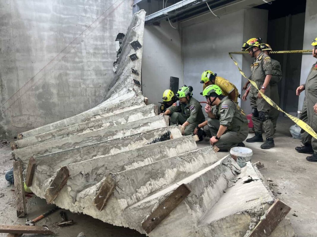 สลด!บันไดปูนถล่มทับร่างช่างไฟเสียชีวิตขณะต่อเติมรื้อถอนไม้ค้ำยันด้านล่างบันไดออกโรงแรมย่านห้วยขวาง