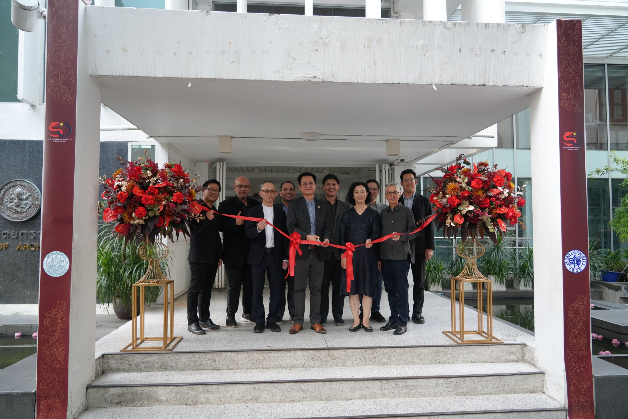 ด้าน รศ.ดร. เกรียงไกร เกิดศิริ รองคณบดีฝ่ายแผน วิจัย กิจการพิเศษ และประกันคุณภาพการศึกษา คณะสถาปัตยกรรมศาสตร์ มหาวิทยาลัยศิลปากร กล่าวว่า มหาวิทยาลัยศิลปากรได้ลงนามความร่วมมือทางวิชาการกับมหาวิทยาลัยฟูตัน เพื่อผลักดันการศึกษาและการวิจัยร่วมกัน ในโอกาสเฉลิมฉลองวาระ 50 ปีความสัมพันธ์ไทย–จีน นอกจากนี้ ยังได้นำผลงานวิจัยของศาสตราจารย์ฉาย ผู้เชี่ยวชาญด้านประวัติศาสตร์จีน มาจัดแสดงในรูปแบบสื่อศิลปะร่วมสมัย อาทิ เกม AR, และวิดีโอแมปปิง ซึ่งจัดแสดงมาแล้วทั่วประเทศจีน และครั้งนี้ถือเป็นครั้งแรกในประเทศไทย