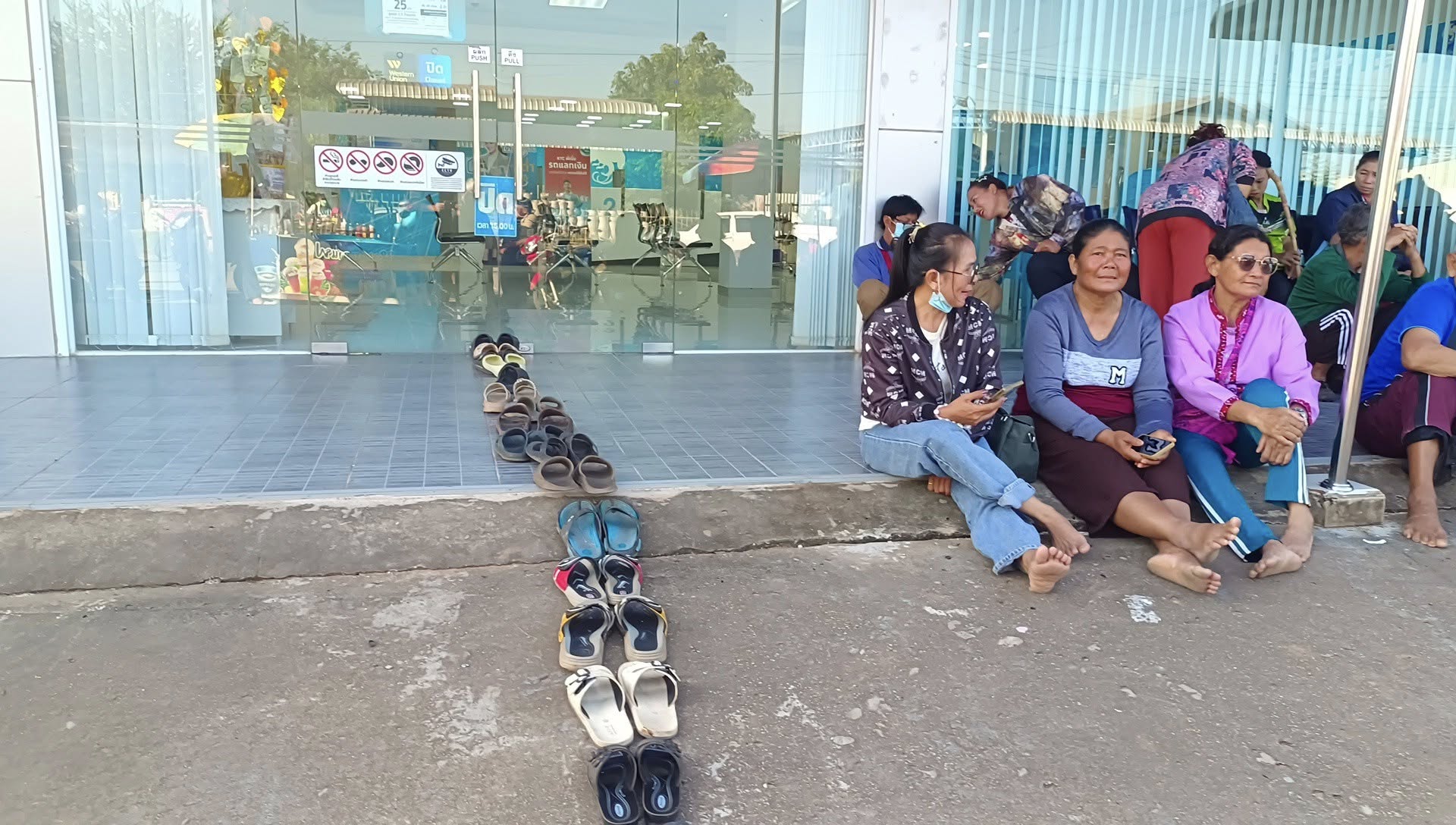 ชาวชัยภูมิแห่นำรองเท้าวางเรียงแถวจองคิว ลงทะเบียน “คนละครึ่งพลัส” ยาวเหยียดกว่า 200 คิว แน่นธนาคารกรุงไทย