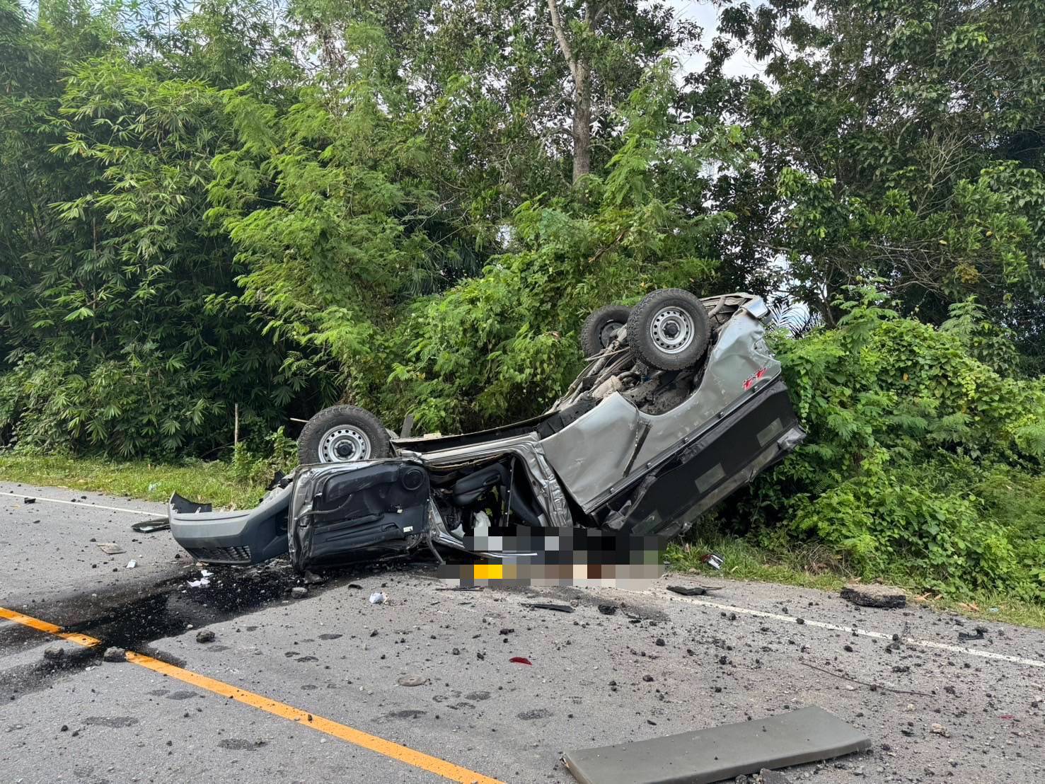 คนร้ายลอบวางบึ้มที่รือเสาะ รถพลิกคว่ำพังยับ หลังกลับจากส่งปลัด จนท.อส.ดูแลความปลอดภัยประชาชนพลีชีพ 1 นาย