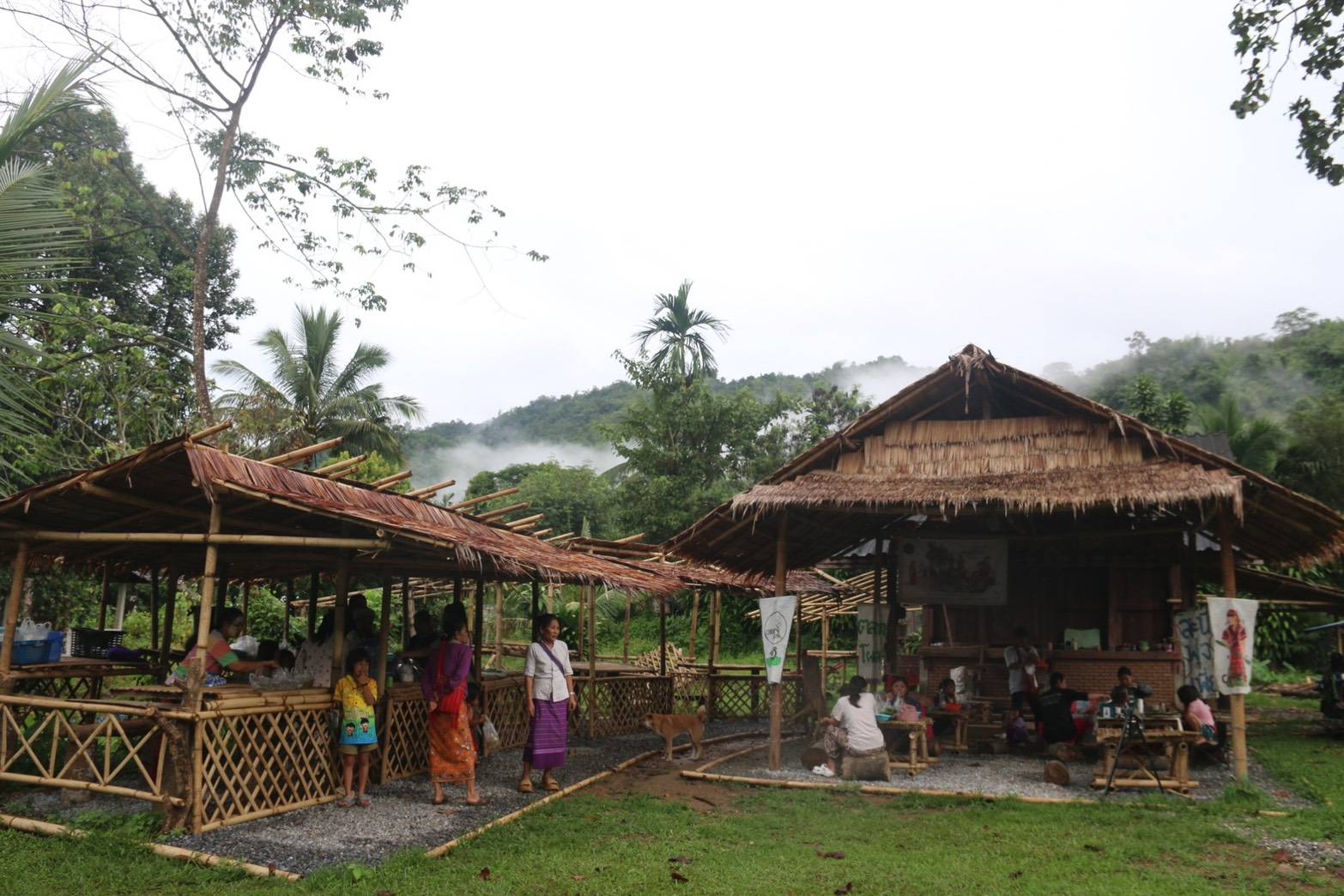 พวกเขาช่วยกันเลือกพื้นที่ “ยุ้งข้าวกลางหมู่บ้าน” เป็นจุดตั้งตลาด และสร้างร้านค้าด้วยวัสดุธรรมชาติอย่างไม้ไผ่ ใบลาน เพื่อให้สอดคล้องกับวิถีเรียบง่ายของชาวกะเหรี่ยงในพื้นที่