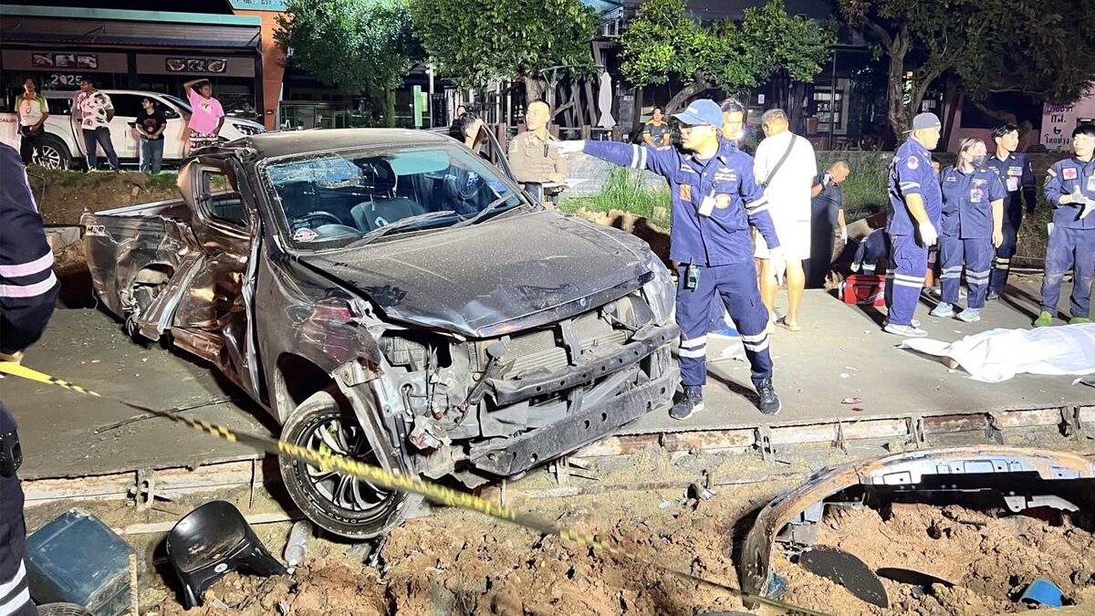 เกิดเหตุสุดสลดกระบะซิ่งเสียหลักเฉี่ยวชนรถกระบะ ก่อนพุ่งชนจักรยานยนต์-รถจอดข้างทาง-คนงานก่อสร้างถนน เสียชีวิต 3 เจ็บ 7 บนถนนมิตรภาพ เมืองพิษณุโลก