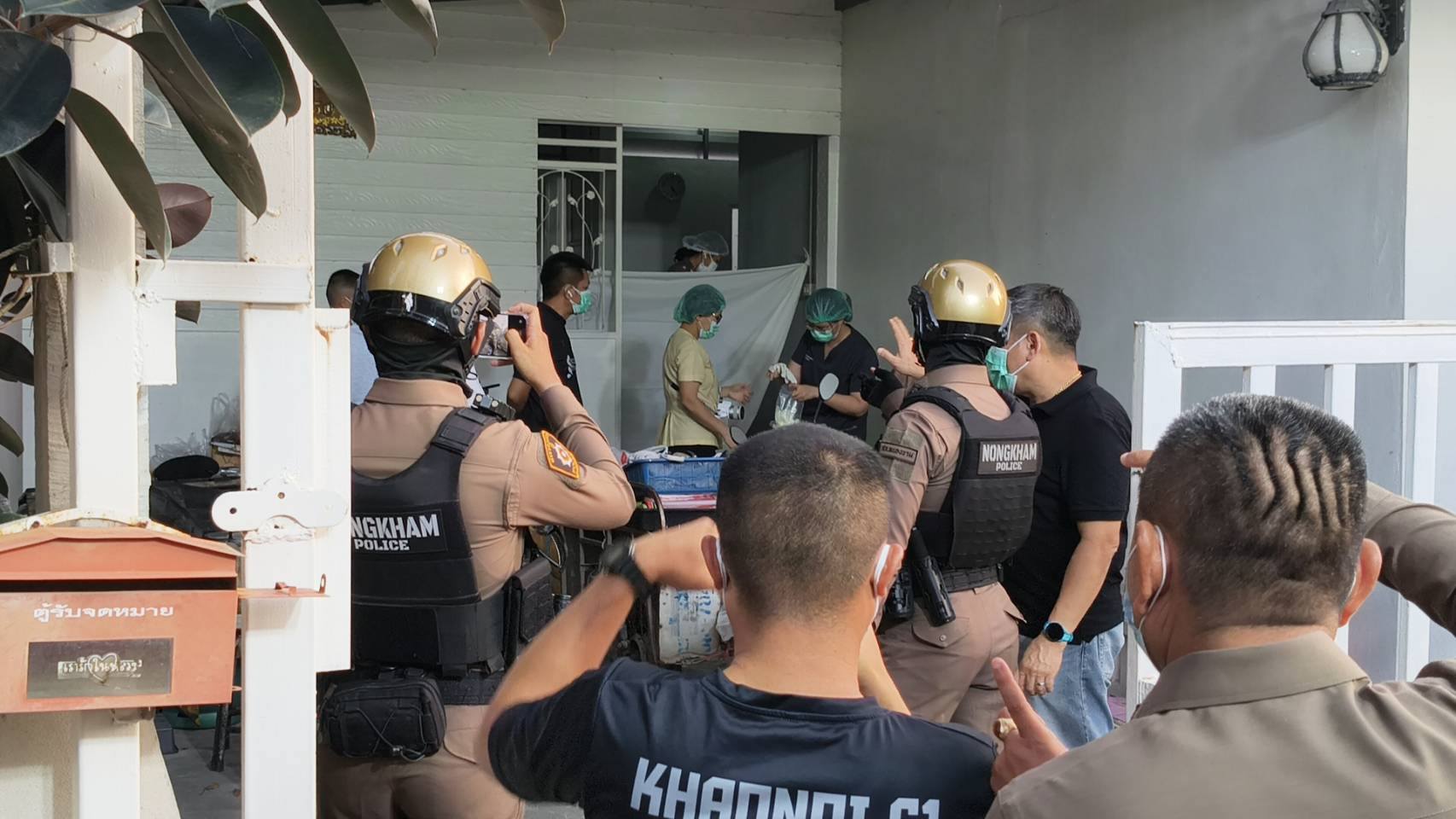 จากการตรวจค้นภายในบ้านพบว่า ผู้เสียชีวิต 4 รายเป็นผู้หญิง ถูกทำร้ายร่างกาย ส่วนผู้เสียชีวิตอีก 1 รายเป็นผู้ชาย ผูกค อเสียชีวิตภายในห้องน้ำ หน่วยพิสูจน์หลักฐานได้บันทึกภาพและเก็บวัตถุพยานทั้งหมดไว้ประกอบการสอบสวน