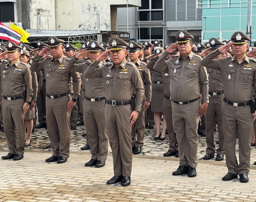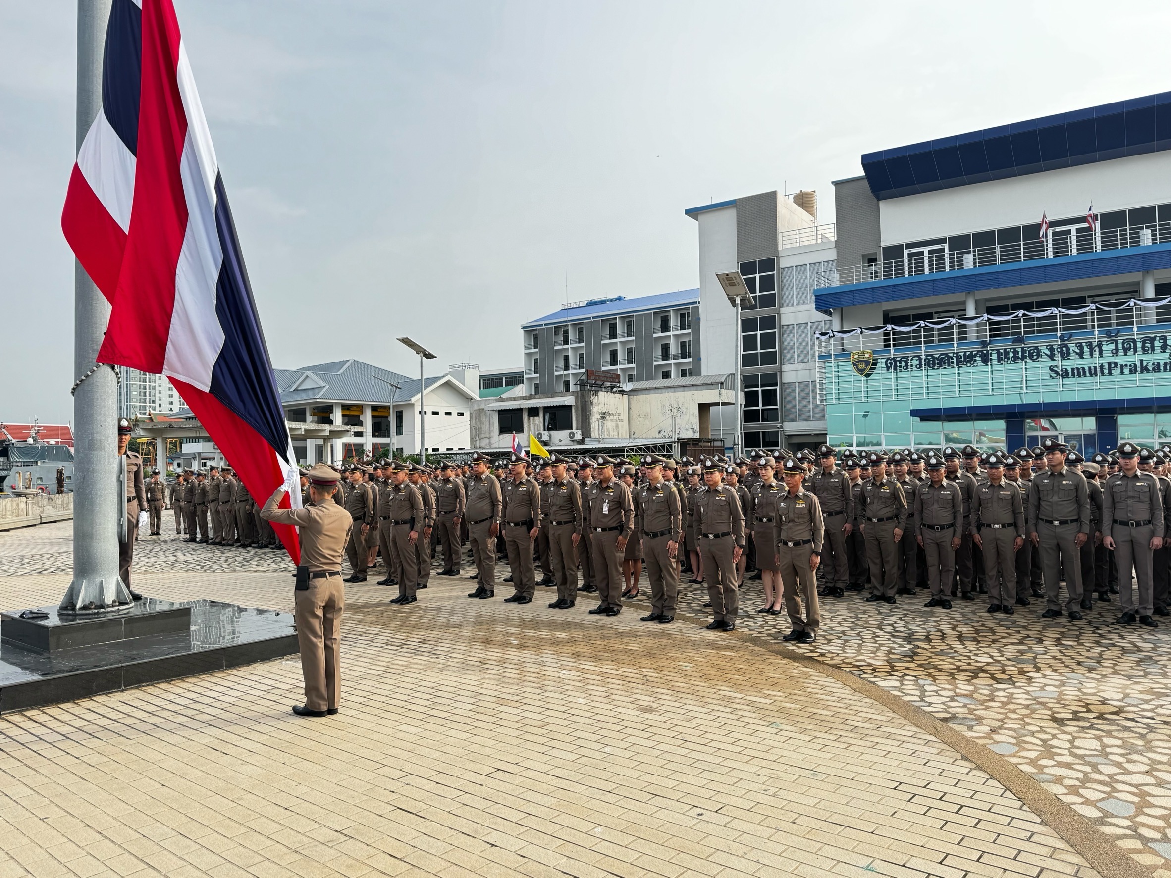 ผู้การฯปากน้ำ “นำตำรวจในสังกัดเคารพธงชาติสวดมนต์บูชาพระรัตนตรัยพร้อมปฏิญาณ กล่าวอุดมคติตำรวจ”