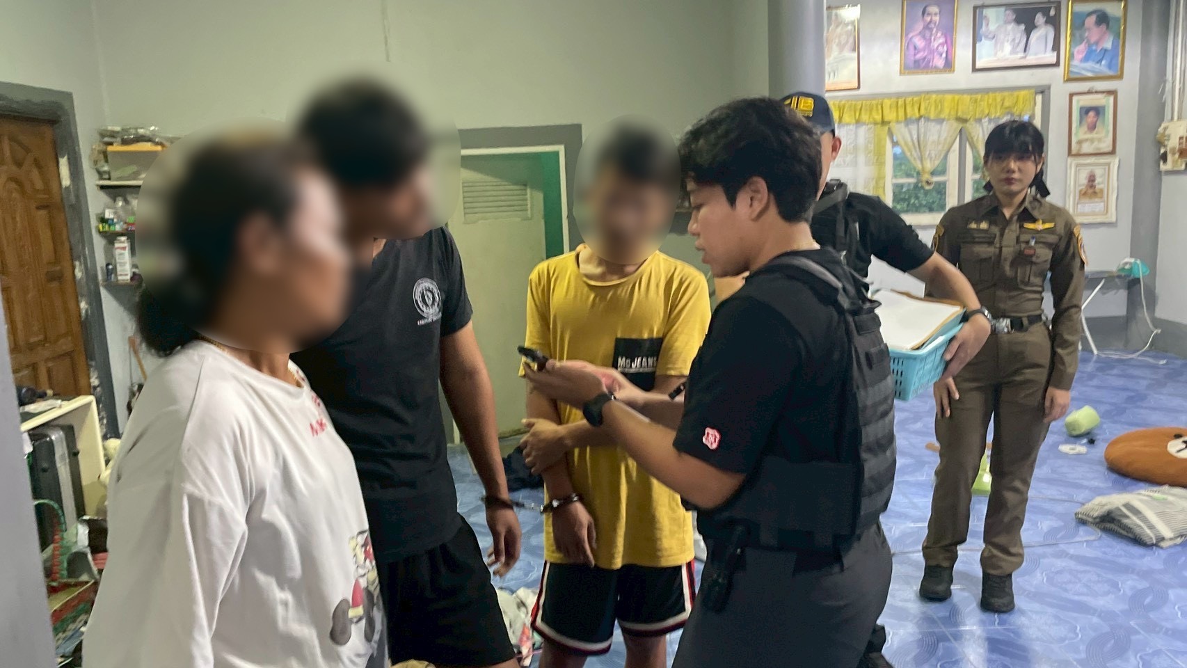 ต่อมา เมื่อวันที่ 17 ส.ค.68 เจ้าหน้าที่ตำรวจ กก.5 บก.ปคม. ได้รวบรวมพยานหลักฐานขออนุมัติศาลอาญา ออกหมายจับกลุ่มผู้ต้องหาทั้งกลุ่มนายหน้า จำนวน 2 ราย และบัญชีรับโอนเงิน จำนวน 9 ราย (11 หมายจับ) ต่อมา ขออนุมัติศาลออกหมายค้นเพื่อทำการตรวจค้นสถานที่ที่เกี่ยวข้อง ในพื้นที่ จังหวัดนครปฐม 1 จุด ต่อมา เจ้าหน้าที่ตำรวจชุดจับกุม ได้นำกำลังเข้าตรวจค้นบ้านพักในพื้นที่ หมู่ 14 ต.บางปลา อ.บางเลน จ.นครปฐม ตามหมายค้นของศาลจังหวัดนครปฐม ที่ 602/2568 ลงวันที่ 10 พ.ย.68 พบนายสหรัฐฯ ผู้ต้องหาตามหมายจับศาลอาญาที่ 4791/2568 และนายณัฐพลฯ ผู้ต้องหาตามหมายจับศาลอาญาที่ 5389/2568 หลบหนีมาซ่อนตัวที่บ้านหลังดังกล่าว